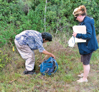 MEL TOADVINE Darnell Jordan, a volunteer, was on hand last week when a homeless camp was cleared of trash and litter. He began working, the area was so covered with trash that he could not see the pine needles on the ground.
