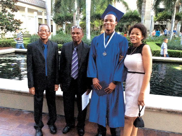 - PHOTO SPECIAL TO THE CITIZEN Jaran Simms, 18, and his mother and the rest of the family pose at Simms’ graduation ceremony from Gateway Charter High School.