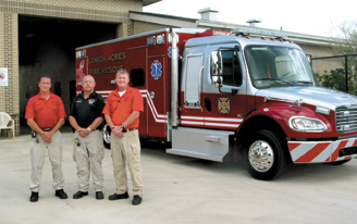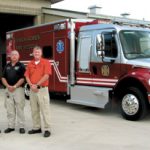 At the meeting held last Tuesday night, April 26, one of the new ambulances was fully equipped and waiting for a certificate to go online this week. It was blessed by the district’s chaplain in a ceremony outside Station 104 off of Sunshine Blvd. and W. 16th Street. The board and other members of the fire department watched as the chaplain blessed the new ambulance and offered a prayer for its future use and then joined the district’s chairman of the board and fire chief by sprinkling “holy water” on the ambulance’s exterior.