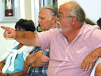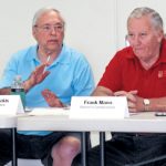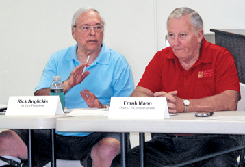 MEL TOADVINE Lehigh Acres Community Council Chairman Rick Anglickis explains the last vote against backyard chickens. At right is Lee County Commissioner Frank Mann.