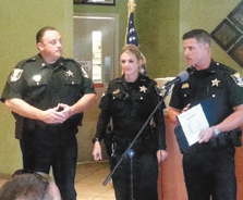 - MIKE BURGERS Lee County Sheriff’s Office Deputy Emili Kilmer, center, is honored as Officer of the Month. With her are Capt. Todd Garrison, left, and Lt. Mark Shelley.