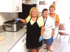 MEL TOADVINE The cooks for three upcoming dinners at First Community Congregational Church are, from left, Vicki Frackman, Barb Kintzer and Kay Gulmy. They are preparing the Harvest Dinner on Nov. 12 and will prepare the free anniversary dinner in December.