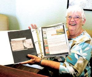 MEL TOADVINE Chamber volunteer Lynn Beck shows off one of the scrapbooks of news events that she has collected.