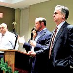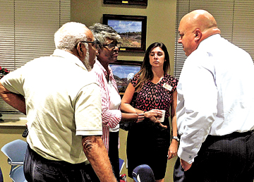 - MEL TOADVINE Lee County Commissioner Cecil Pendergrass, right, talks with some of those who attended the holiday town hall meeting.