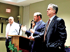 - MEL TOADVINE State Sen. Matt Caldwell speaks to the group. Surrounding him are Lee County Commissioner Cecil Pendergrass, Passidomo and LA-MSID Commissioner Mike Welch.