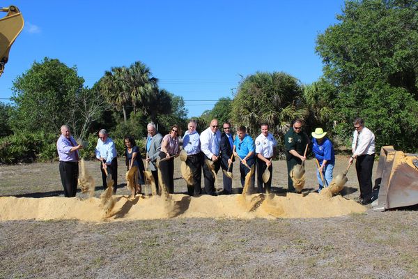 Lee County Commissioners Frank Mann, Cecil Pendergrass and John Manning were joined by local officials, like Lehigh Acres Community Council President Rick Angilickis, to turn over the first symbolic mound of earth with gold-plated shovels.