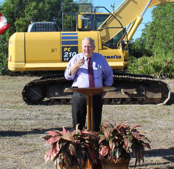 - JUSTIN MARTIN District 5 Lee County Commissioner Frank Mann, who represents Lehigh Acres, speaks to the audience about the long process that has been involved in making the project a reality.