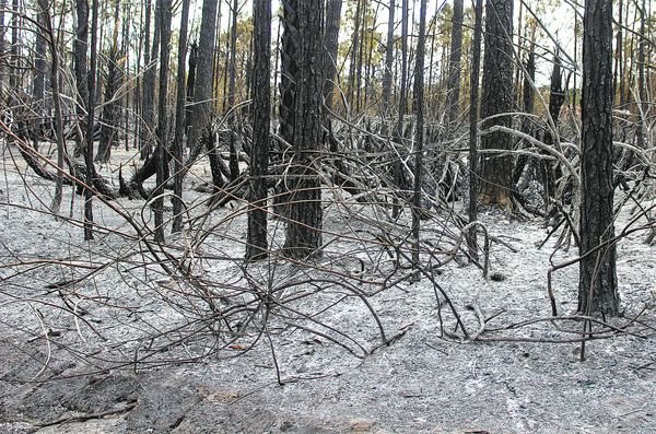 - CHUCK BALLARO The charred remains of a wooded area near 21st Street West on Saturday.