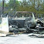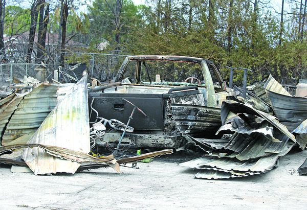 CHUCK BALLARO Charred remains of a pickup truck that was destroyed.