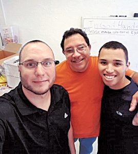 PHOTO SPECIAL TO THE CITIZEN From left, Sam’s Club manager Matt Schweitzer with Edgar Morales, owner of In God’s Hands Catering, and Morales’ son, Joel.
