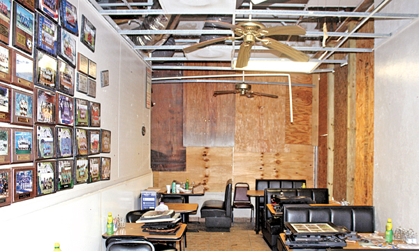 CHUCK BALLARO The inside of Joe’s Cafe, at 43 Homestead Road N., with the windows boarded up Sept. 15, following the storm.