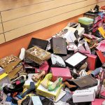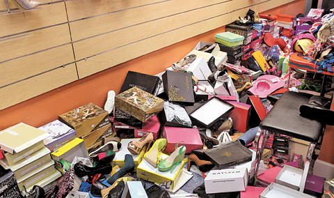 CHUCK BALLARO The inside of The Girls and Men of Fashion on Homestead Road on Sept. 15. Piles of clothing ended up on the floor, wet and unsellable.