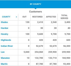 “We continue to thank our customers for their patience, especially those in Southwest Florida, who have suffered the longest without lights or air conditioning,” he continued. “I want those customers, in particular, to know that thousands of restoration workers are working in their area more than triple the number of resources we had in the area just a few days ago. We remain firm in our commitment that we won’t stop until every last customer has their electric service restored.”