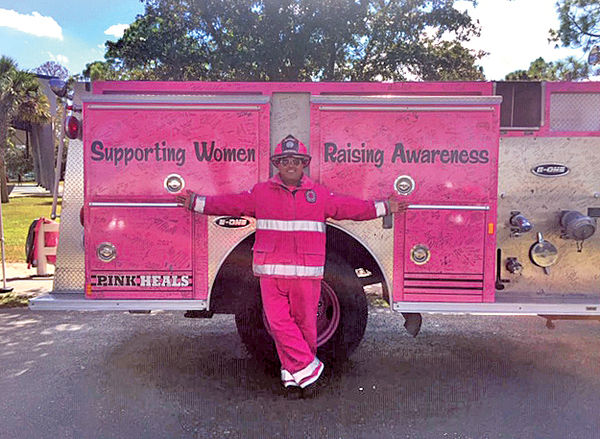 - Pink Heals volunteer firefighter Alex Delgado. MELISSA BILL