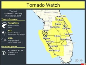 The Lee County Emergency Management Center has issued a tornado watch that also includes the possibility of high wind gusts and hail.