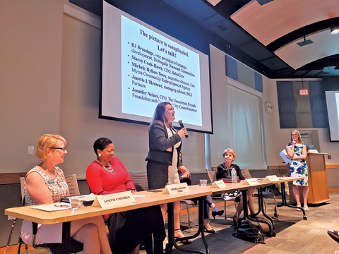 Stacey Cook, CEO at SalusCare who worked her way up to leadership from a volunteer position 20 years ago, said a big issue for women is a lack of confidence.