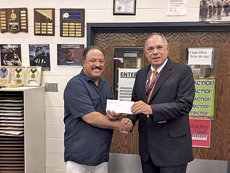 Later in the day, Bell presented a check to East Lee County High School’s Band Director Luis Fisher.