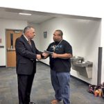 - Lehigh regional medical center as chief executive officer Gary Bell with East Lee band Director Luis Fisher. PHOTO PROVIDED