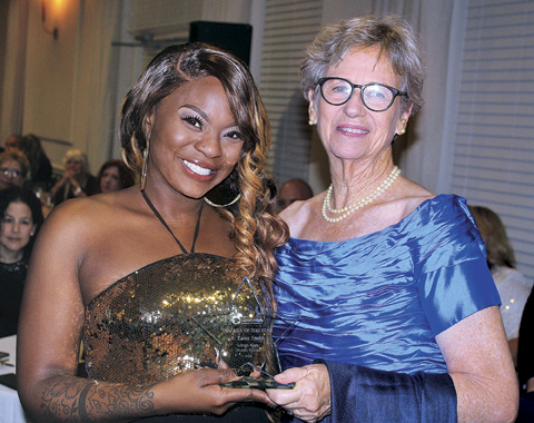 Alana Smith, teacher at Lehigh Middle School, receives her Teacher of the Year Award from Lee County School Board member Cathleen O’Daniel Morgan. CHUCK BALLARO