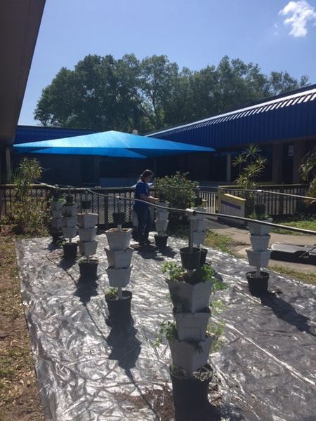 Island Coast High School students started their Spring Break at Buckingham Exceptional Center by installing a handicap accessible hydroponic garden last Friday.