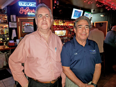 - Mike Welch, chairman of the East Lee County Chamber of Commerce, and Luis Hernandez, of ValAir, during The East Lee County Chamber of Commerce Fall Fest at EmJay’s on Friday. CHUCK BALLARO