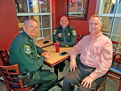 - Capt. Mark Mallad and Lt. Jason Tarsia of the Lee County Sheriff’s Office, with Mike Welch, chairman of the East Lee County Chamber of Commerce, at Fall Fest at EmJay’s on Friday. CHUCK BALLARO
