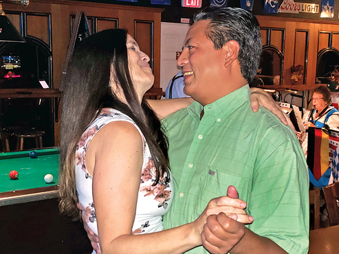 - Ama Whitney and Jonathan Gil dance to the Garman music during The East Lee County Chamber of Commerce Fall Fest at EmJay’s on Friday. CHUCK BALLARO