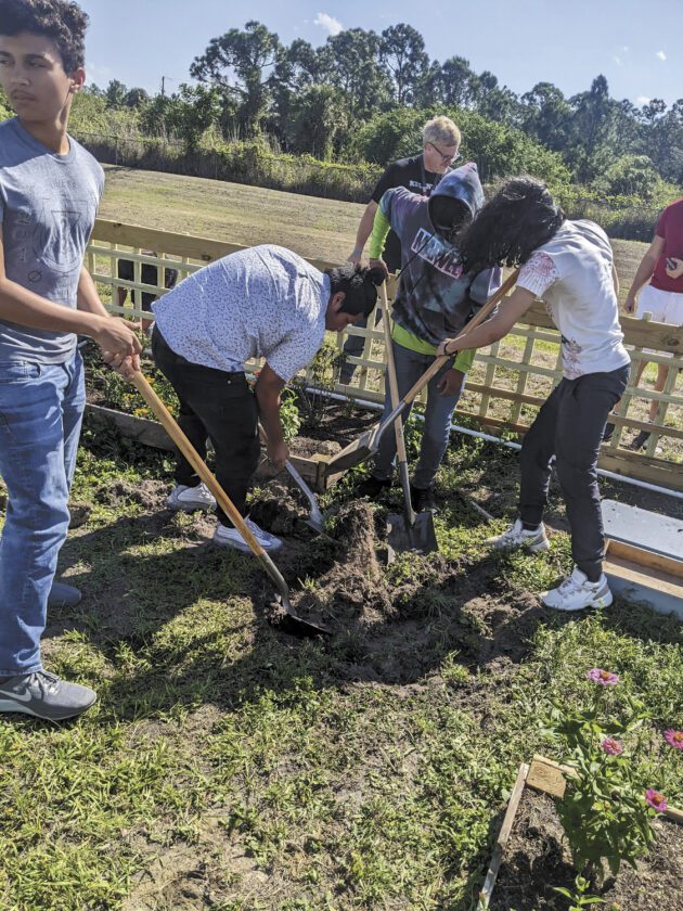 East Lee County High students work on their pocket refuge pollinator garden. REFUGE/DDWS