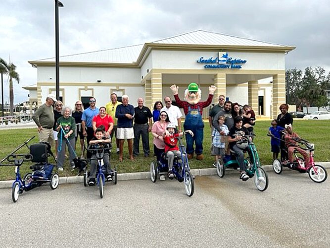 Robbie’s Riders, Grampy’s Charities and Sanibel Captiva Community Bank presented six custom-made, adaptive bicycles to local children with special needs and their families. PHOTO PROVIDED