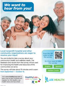 Healthy Lee is gathering input from the community through this community survey. This quantitative assessment will be supplemental to the current Community Health Needs Assessment underway for 2023. Lee Health asks for community participation and support. They will share the data collected with the East Lee County Chamber of Commerce and the broader community at the end of the survey.