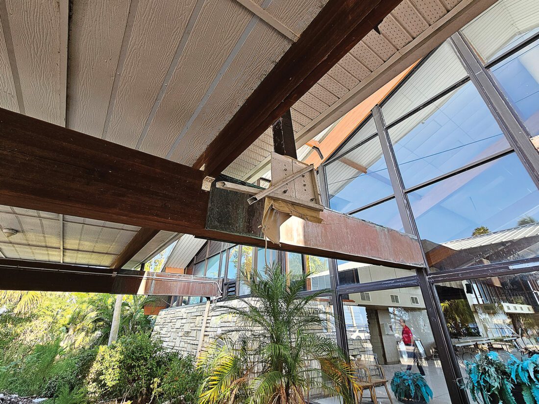 - There was talk of preserving items in the ballroom, such as these exterior posts and beam supports. Through discussions, many challenges were shared, ranging from cleaning and refinishing items, potential for breakage, as well as storing the items, items not original to the building, and having structural evaluation and certification before using in another structure. Cape Coral Museum of History representatives identified some of the control panels, as it had a vintage electronic fixture that they wanted to incorporate in a display at the museum. CJ HADDAD