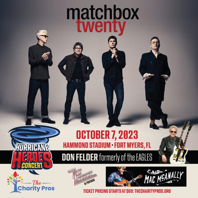 Southwest Florida rock band Red Hannah will perform their All-Star set, featuring appearances by local professional musicians Matty Jollie, Casey Bishop and Sheena Brook. During the event, local “hurricane heroes” who have made a difference in the community over the past year following Hurricane Ian, will be honored for their support.