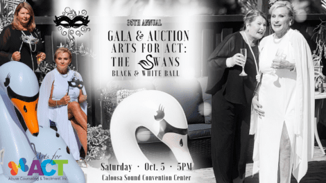 The 35th annual Arts for ACT Gala and Auction will be held on Saturday, Oct. 5, at the Caloosa Sound Convention Center in downtown Fort Myers. “The Swans” Black & White Ball will make for an exciting evening of fun, fundraising, and incredible auction items to support ACT’s mission to end abuse and empower survivors in the Southwest Florida community.