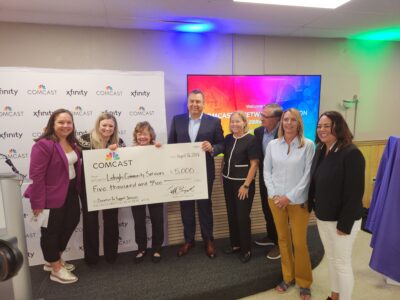 Besides a ribbon cutting, the Moose Lodge received a new flag. Also, Lehigh Community Services received a $5,000 donation from Comcast for its support services.